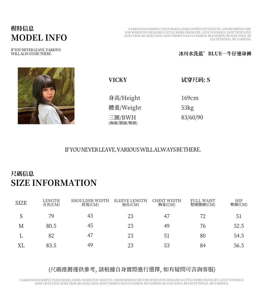 尺寸表皆為水平測量,會因布料彈性、水洗處理、測量起訖點等因素,