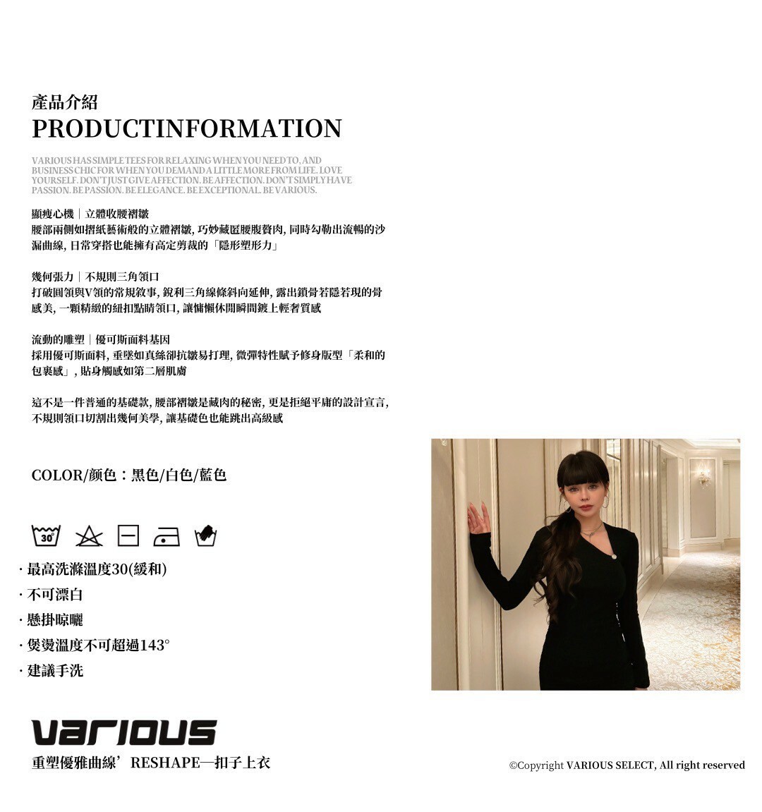*清洗後請快速調整商品型態並吊掛晾乾即可