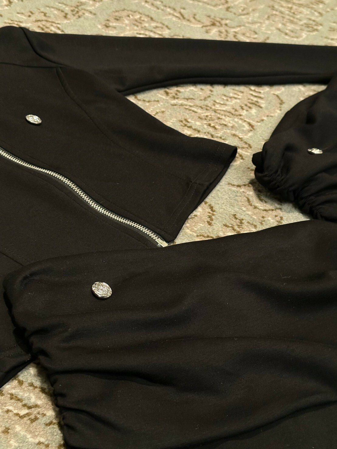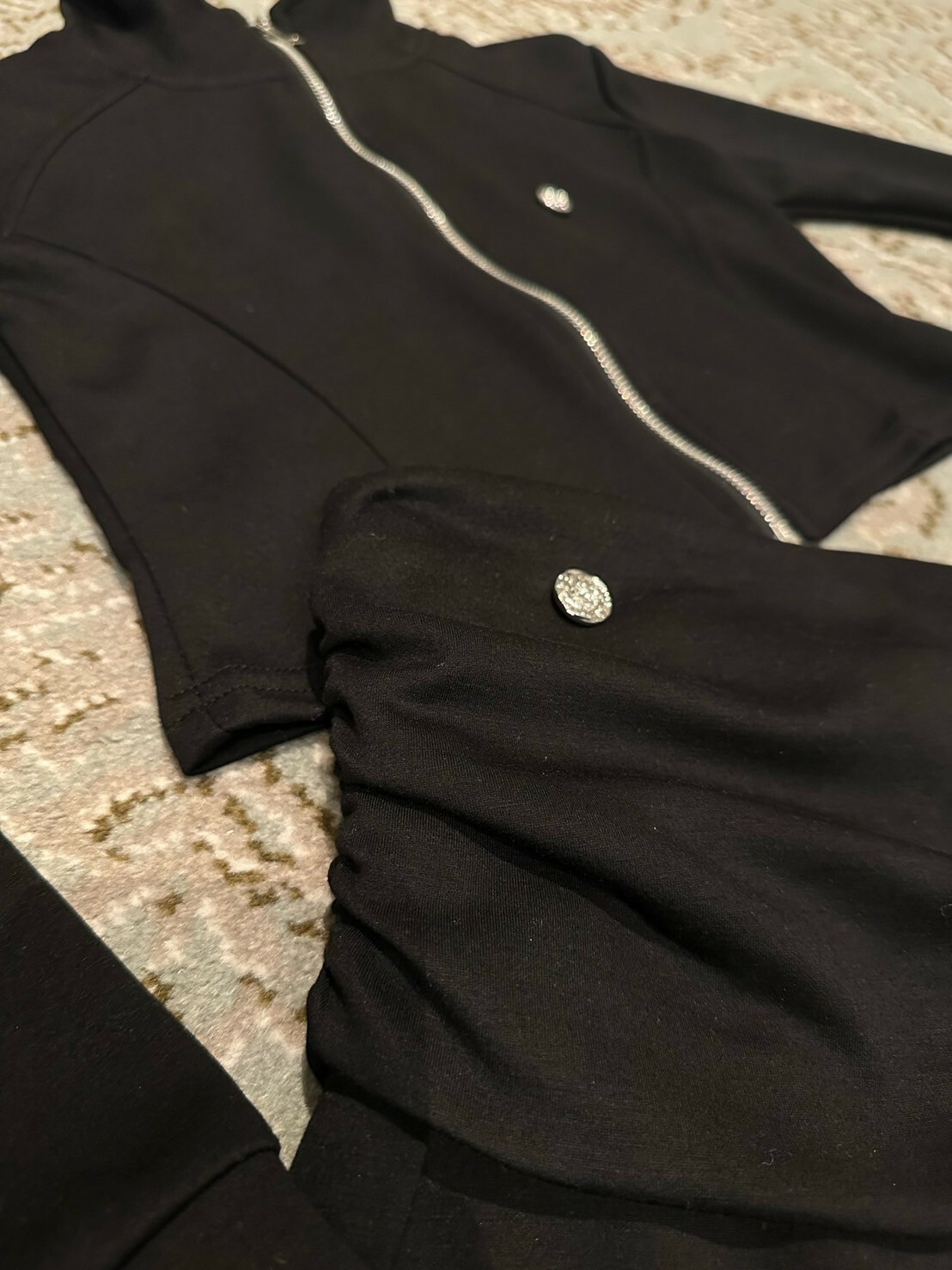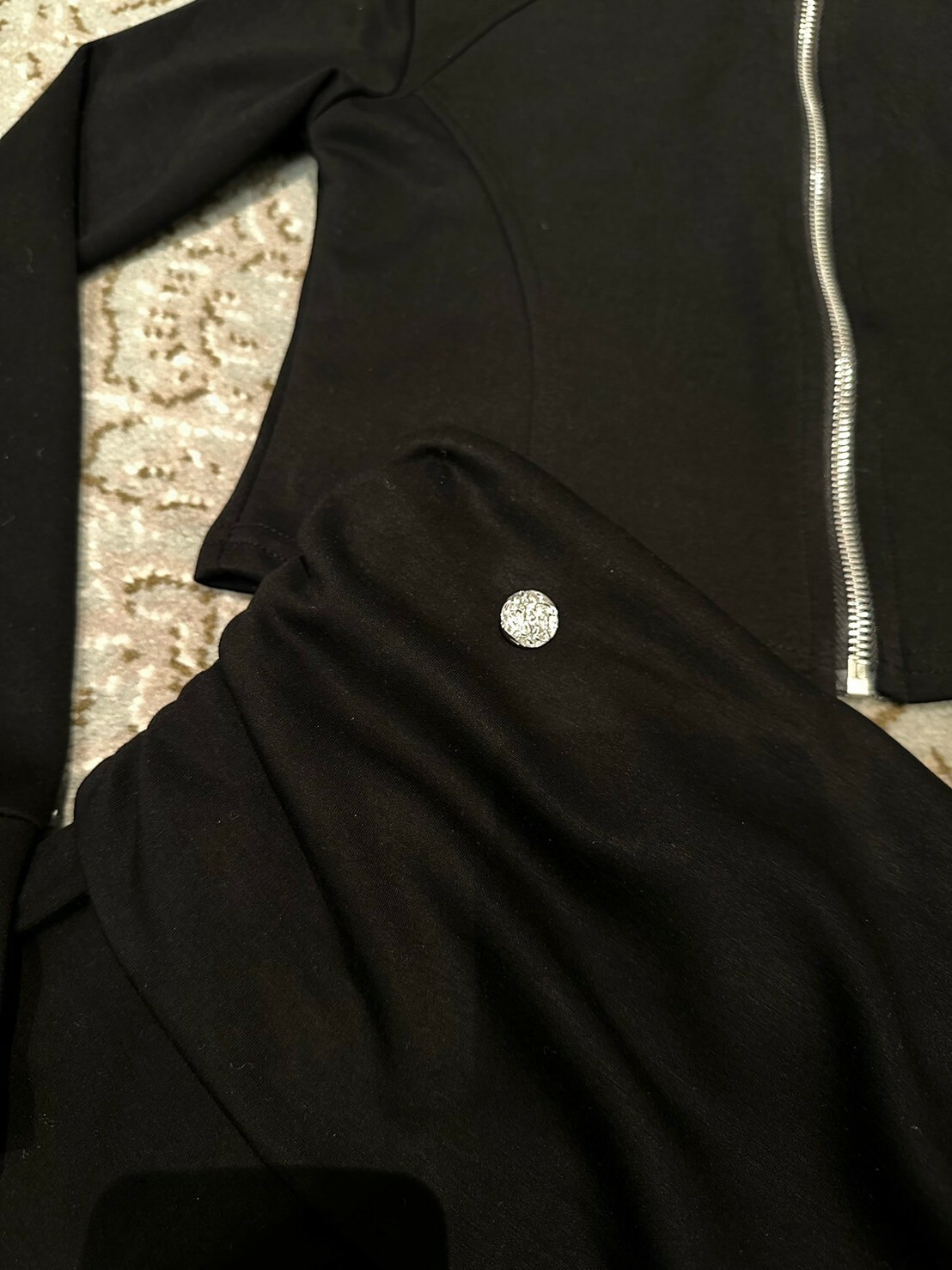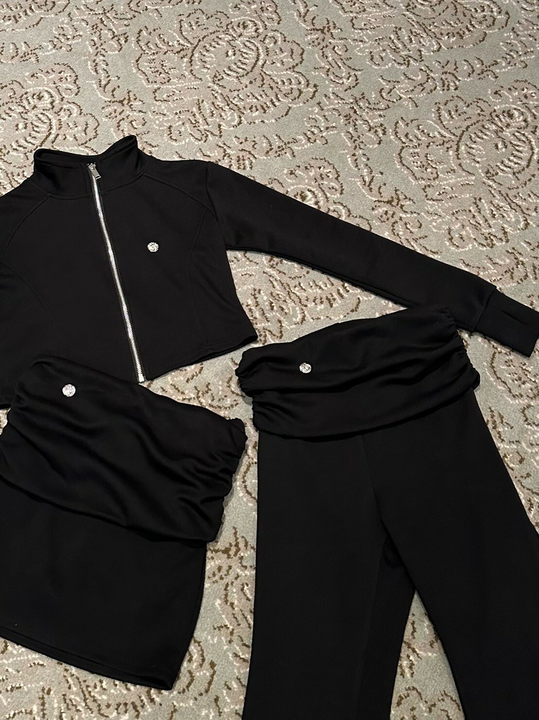 立裁短版連帽外套+精緻的包臀短裙+長腿喇叭褲