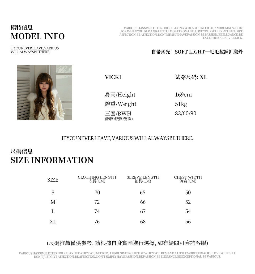 XL衣長76 袖長68 胸寬56【注意事項】
