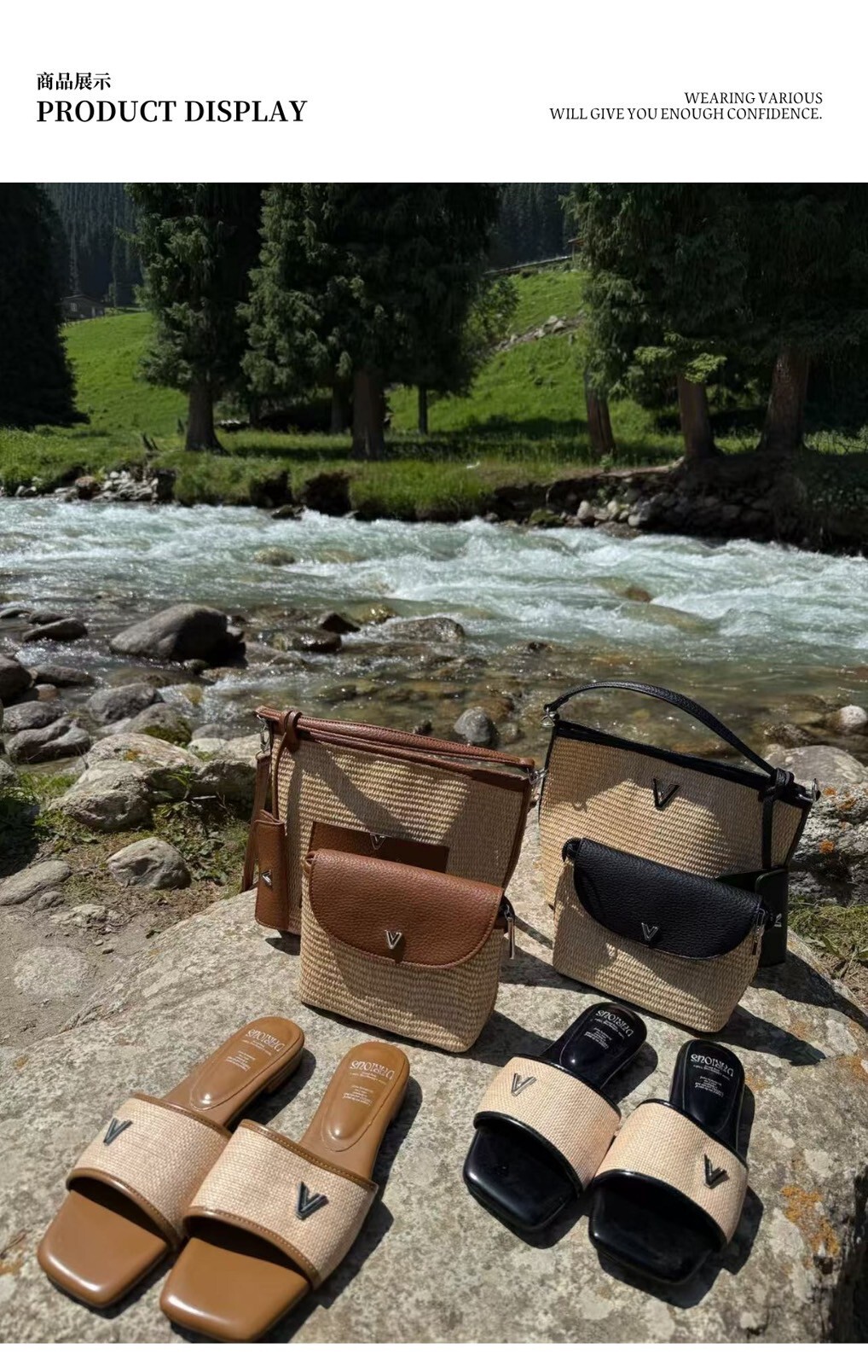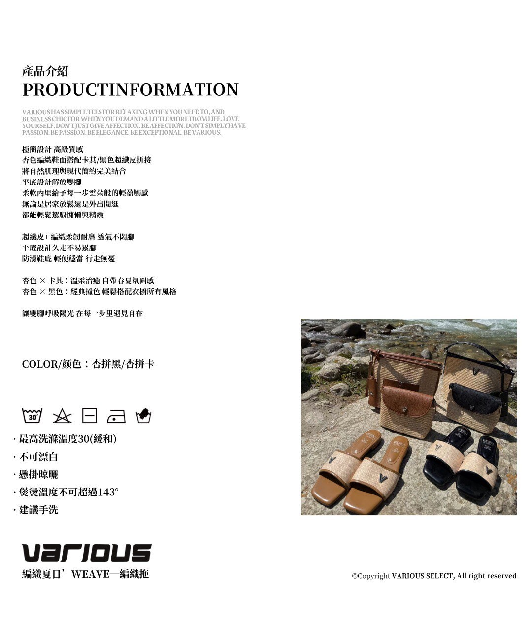 杏色編織鞋面搭配卡其/黑色超纖皮拼接